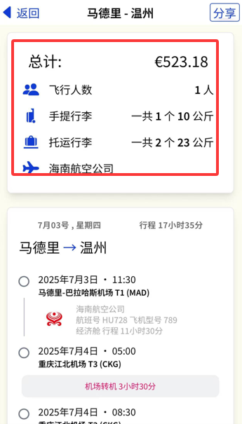 在行程详情页右上角找到“分享”或“更多”按钮(图标通常为三个点或箭头)。