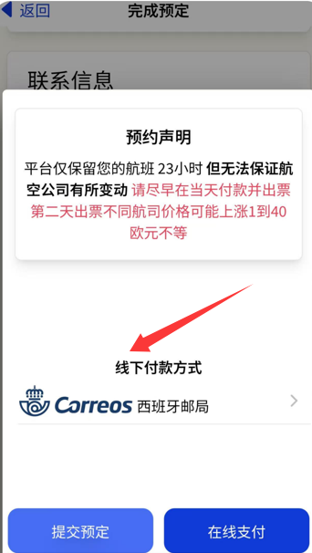 4、预约机票可以进行线下付款