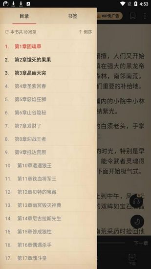2.点击之后,就可以浏览小说的所有目录,此外还可以通过目录直接跳转小说章节