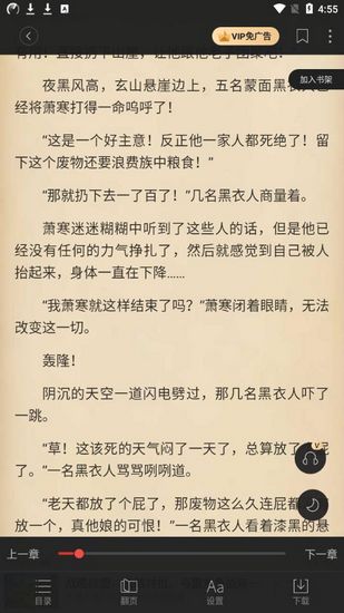 3.如果是普通的电子书,那么也可以进行听书,只要在阅读模式下,点击右下角的耳机图标,也可以进行听书,只不过普通小说想要开启听书模式,是需要会员权限。