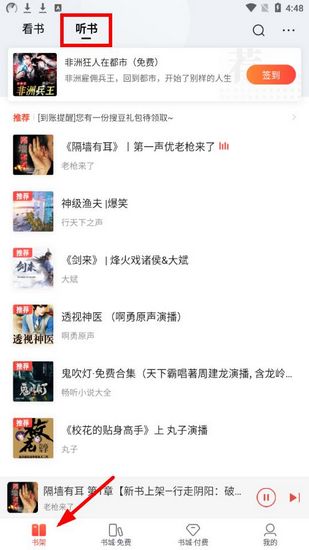 1.首先我们需要在书架里切换到有声小说界面,也就是【听书】标签页