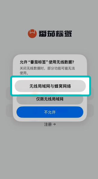 2、如果提示软件使用无线数据,请点击"无线局域网与蜂窝网络"