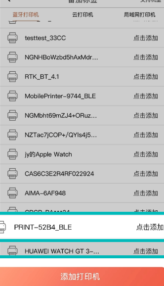 4、搜索名称为Printer XXXX(地址后四位)的打印机,并点击添加