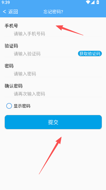 2、输入以往账号用户名称以及短信验证码的信息,之后输入新密码完成重置操作。