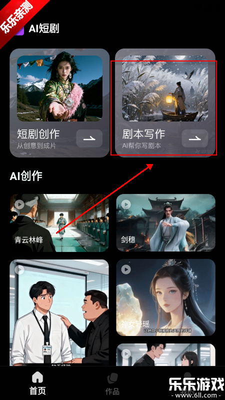 1、进入APP主界面,选择「剧本写作」模式