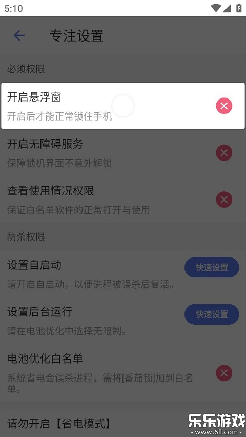 1、开启锁机之前,需要完成一些必要的权限,点击“锁机优化”,开启悬浮窗,才能正常锁住手机。