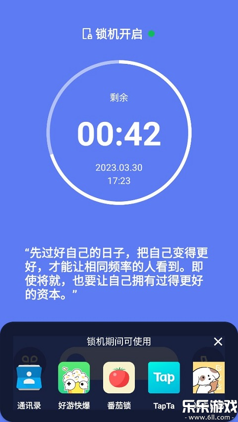 4、开启锁机后,你将不能使用手机里的任何应用,倘若非常强制解锁,则会受到一定的惩罚。期间,你可以设置“白名单”来使用一些必要的应用App,如微信、QQ以及电话等功能。