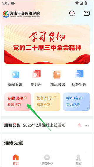 使用APP或者微信公众号打开海南干部网络学院客户端。