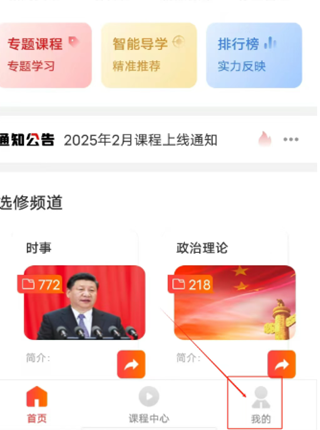 通过海南干部网络学院APP或微信公众号登录个人账号,进入“个人中心”。