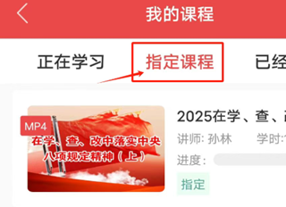 在“指定课程”栏目下完成规定课程学习,系统会自动记录学习时长和进度。
