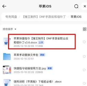若快捷指令方式无法使用,可网盘下载补丁压缩包,解压后将全部.npk格式文件拷贝粘贴至手机“文件”App中的地下城与勇士:起源/ios/bundles目录,替换原有文件。
