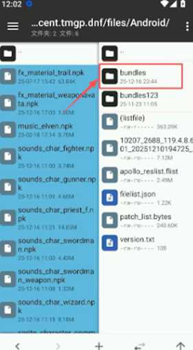 5.在文件管理app中找到第1步下载的压缩包(一般在内部存储/Download里,找不到可以搜索),把压缩包里的所有npk格式文件解压到任意位置,把所有npk格式文件全选,复制,粘贴到「内部存储(我的手机)/Android/data/com.tencent.tmgp.dnf/files/Android/bundles/」全部替换即可。