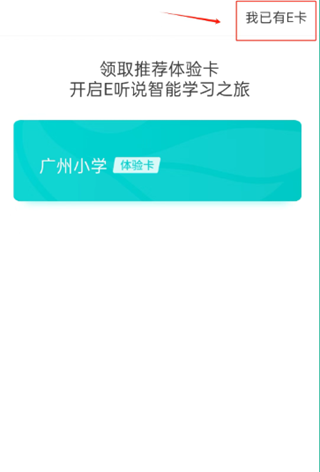 2、下一步跳转到新页面请点击右上角的“我已有E卡”(如下图)