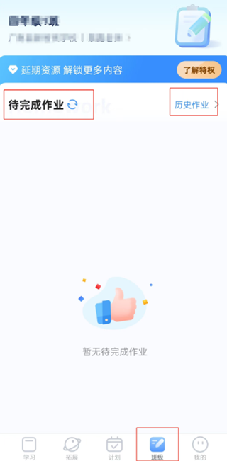 02查看作业点击菜单栏从右到左第二个图标——“班级”即可查看到还有哪些待完成作业(如下图)