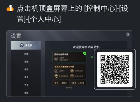 若点歌机支持手机APP或微信点歌功能,可通过“多唱”APP或微信扫描点歌机屏幕上的二维码,连接点歌机。