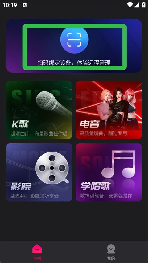 2、然后打开多唱app,点击扫描标识进行扫码绑定设备。