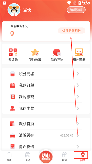 1、打开软件点击【我的】,点击【做任务赚积分】