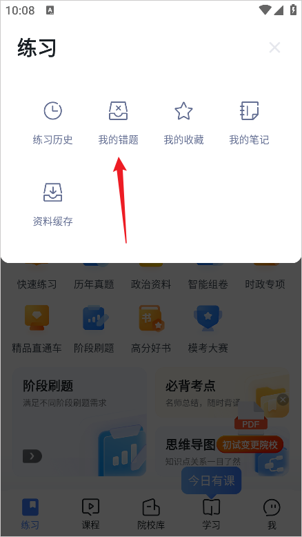 2、然后选择【我的错题】