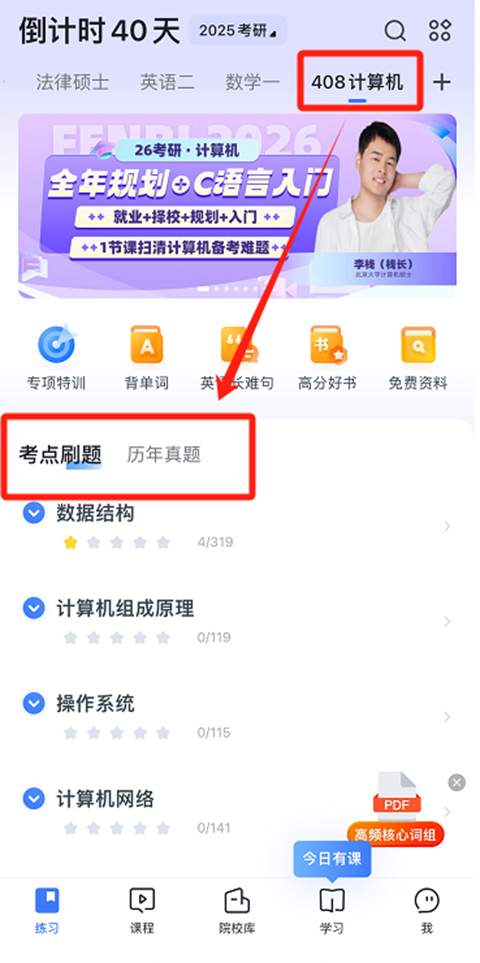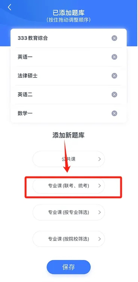 选择“(408)计算机学科专业基础”或其他想要练习的专业课题库——点击“确定/保存”。