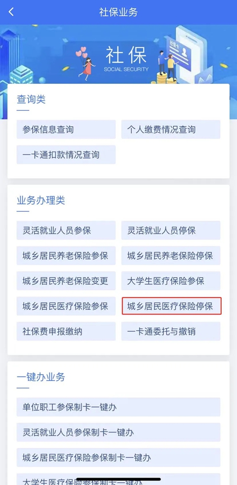 (1)登录首页后,选择“办税”-“社保业务”,点击“城乡居民医疗保险停保”;