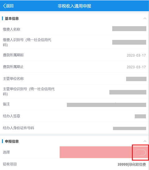 系统自动带出申报信息,核对无误后勾选选择按钮。