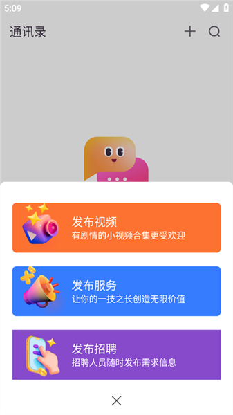3、点击下面栏目中的“+”,一键发布视频,招聘,服务等。