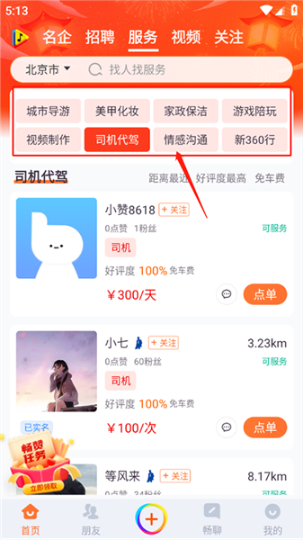 2、在首页查看同城服务,如果你有一技之长,就可以在同城服务中找到多种工作内容,同时还提供短视频功能,可以浏览趣味的内容。
