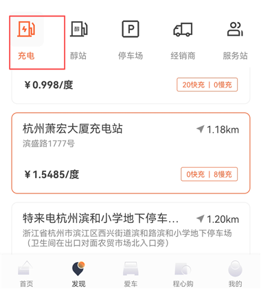 1、我们进入【发现】页面,点击【充电】页面。