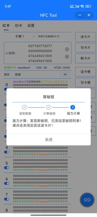 一次操作一般可以获取一个扇区秘钥和数据,重复以上步骤,直至获取完整数据即可。