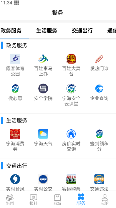 3、在服务中有政务服务、生活服务、交通服务、通讯服务四大版块,用户的各种日常需要都能在这里解决。