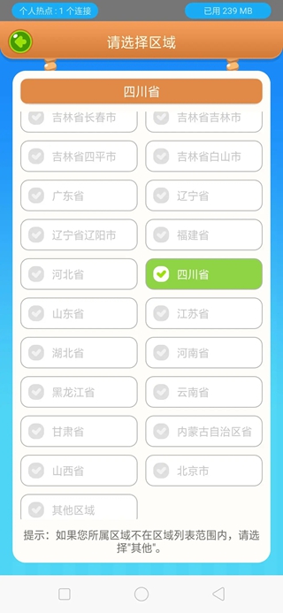如果区域内没有自己所属地市,请选择【其他区域】