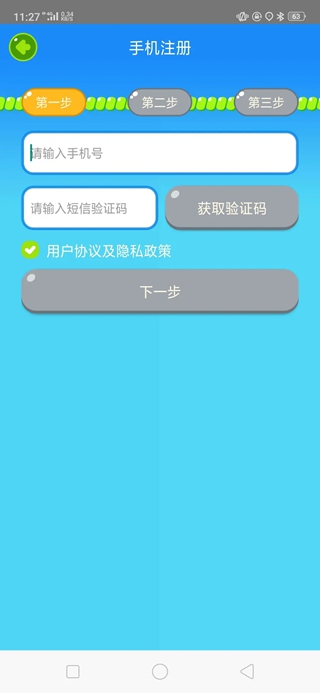 输入手机号,点击【获取验证码】按钮,输入验证码点击【下一步】