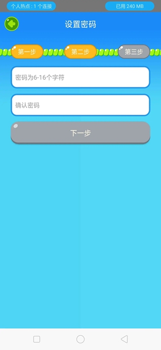 设置手机端登录密码,输入密码点击【下一步】