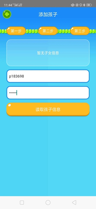 输入学校下发的家长账号(p开头的账号)和密码,点击【读取孩子信息】