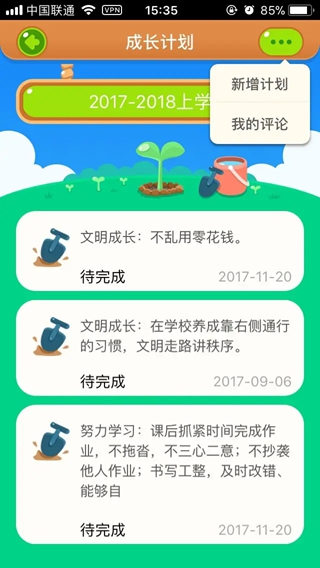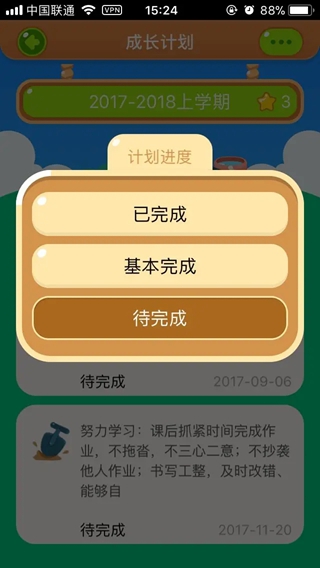 学期末,学生对“成长计划”完成情况进行评价,家长完成对学生“成长计划”的进行评论。