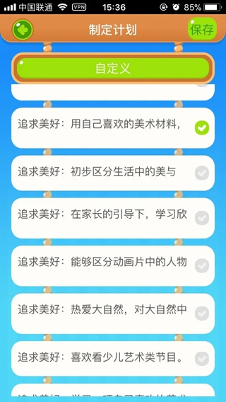 4.勾选计划条目或点击【自定义】来增加成长计划,完毕后点击【保存】