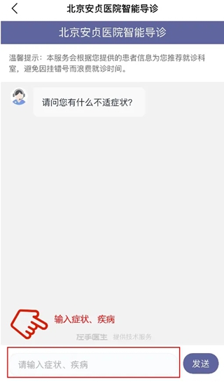 2、在下方输入栏输入相关症状、疾病点击发送