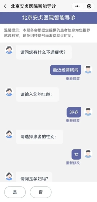 北京安贞医院APP智能分诊操作指南面向“知症不知科”的患者群体,安贞医院在官方APP开发出“智能分诊”功能模块,帮助患者“找对”就诊科室,同时避免挂错号引起的不必要的麻烦。在掌握了患者的症状、轻重程度、年龄等信息后,系统按可能性优先级自动推荐相关挂号科室,患者点击挂号科室后可自动跳转至挂号列表进行挂号,帮助患者解决就诊科室选择的困惑。
