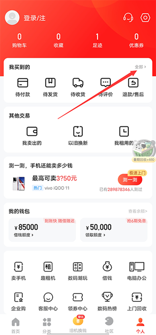 2、接着点击“上门回收”选项。