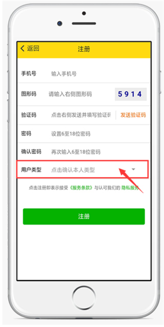 7、根据个人需求选择用户类型,最后点击注册即可。