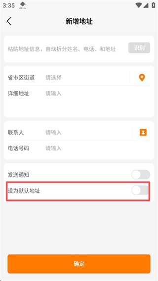 输入联系人、电话号码,按需开启"设为默认地址";