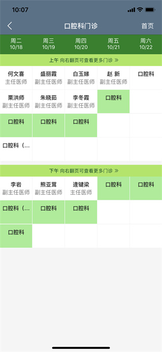6、选择好之后系统就会显示接下来七天内的坐诊医师情况了;