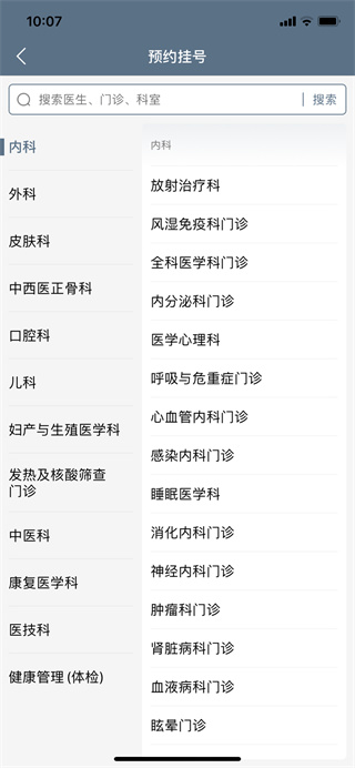 5、选择你要的科室,也可根据医生、门诊、科室进行搜索;