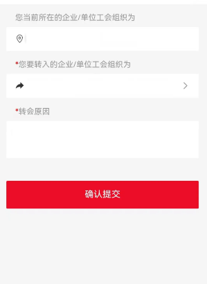 2、填写您要转入的工会组织及转会原因,点击“确认提交”后,等待转入工会组织管理员审核。