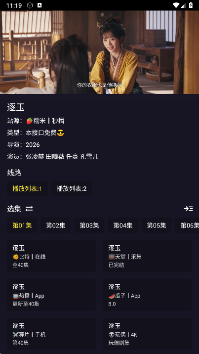 4、再下面可以任意选择集数播放源等等