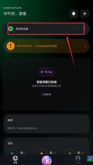 3、返回软件首页,找到“添加设备”按钮并点击,开始搜索附近可用设备。