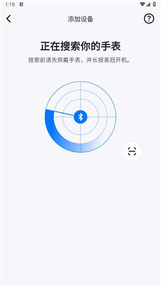 3、出现这个页面以后,由此就搜索完成了。我们也可以点击右下角【扫描】我们的手表二维码。