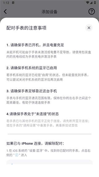 4、配对手表的【注意事项】如下图,如果无法配对,建议检查一下。