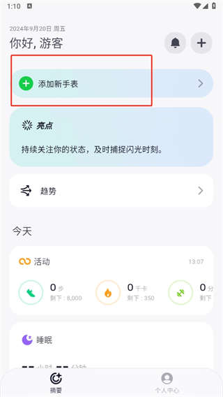 1、在fitbeing首页上,点击【添加新手标】。