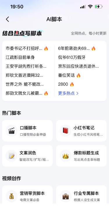 即可一键生成灵感选题/爆款标题/口播脚本/小红书发布文案等网感文案。